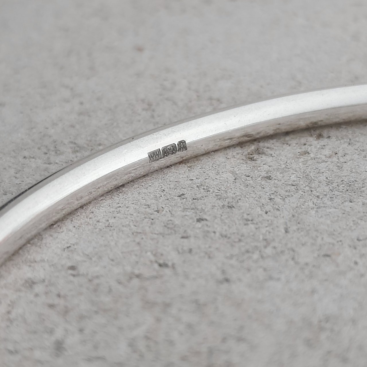 The bangle is hallmarked by the Edinburgh Assay Office. As countries all over the world are increasingly looking inwards and international tension grows, it is hallmarked with the International Convention Marks as a symbol of reaching out across borders.