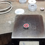The bangle is handmade in Sterling Silver. The Sterling silver slider is filled with eco-resin mixed to a warm red and polished to a glossy finish. The back of the slider is silver, as can be seen in the first image. The slider dances loosely around the bangle.