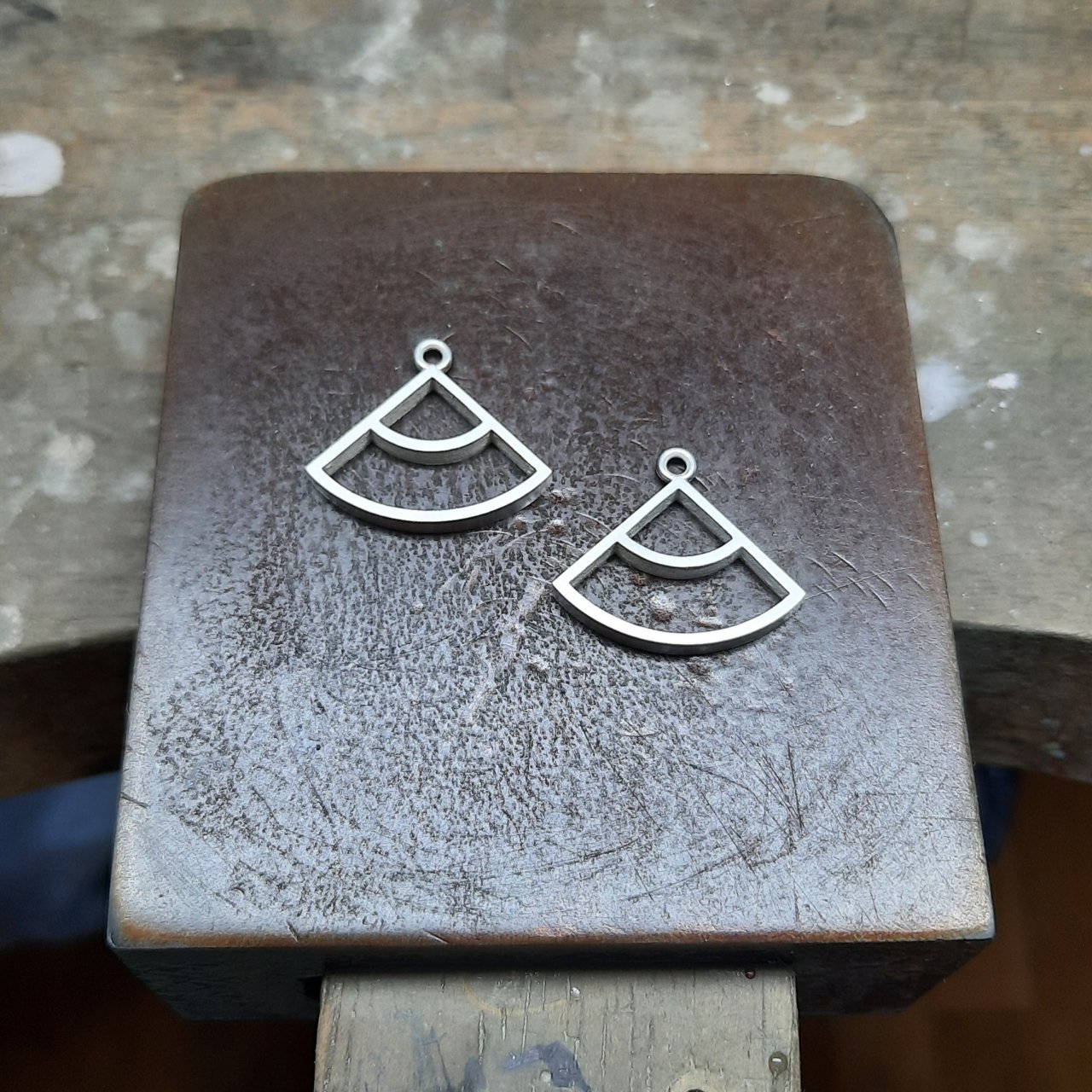 These New Quarter Dangle Earrings are handmade in recycled Sterling silver and filled with eco-resin mixed to a vibrant turquoise and grey. Each colour combination in my New Quarter series has a name. This one one is called 'Building Bridges'.