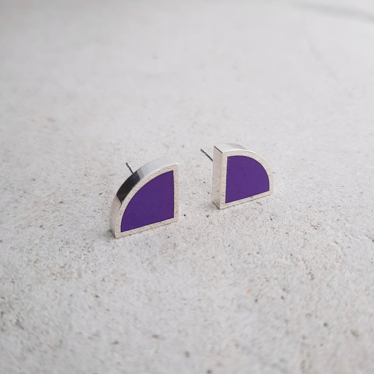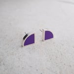 These Small New Quarter Studs are handmade in recycled Sterling silver and filled with eco-resin mixed to a sumptuous aubergine purple.