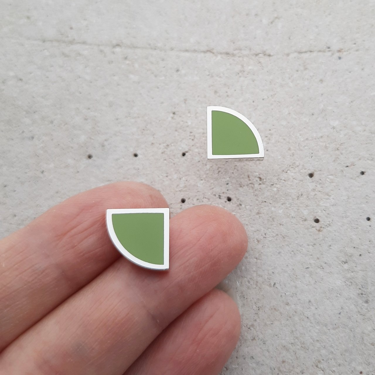 Small New Quarter Studs in Soft Earthy Green or Aubergine